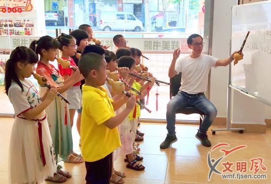 孩子們在認真地學習葫蘆絲課程(祥美社區(qū)供圖)