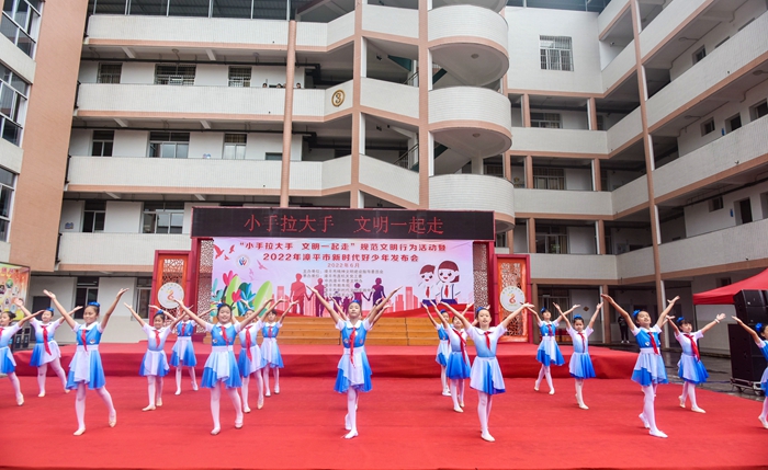 文明風(fēng)6月16日訊 為深入貫徹落實習(xí)近平新時代中國特色社會主義思想,積極培育和踐行社會主義核心價值觀,進一步加強漳平市中小學(xué)學(xué)生、廣大市民文明行為習(xí)慣的養(yǎng)成,提升文明素養(yǎng),6月10日,漳平市委文明辦、市直機關(guān)黨工委、市教育局等多部門聯(lián)合在漳平市城關(guān)小學(xué)開展?fàn)巹?chuàng)全國文明城市“小手拉大手 文明一起走”規(guī)范文明行為活動暨2022年漳平市新時代好少年發(fā)布會。副市長聶鑫及相關(guān)單位負責(zé)人參加啟動儀式。