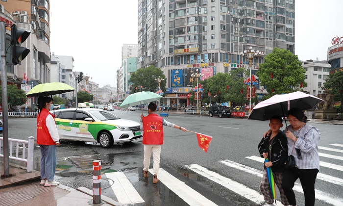 志愿者在交通路口開展文明交通勸導(dǎo)。周寧縣委文明辦供圖