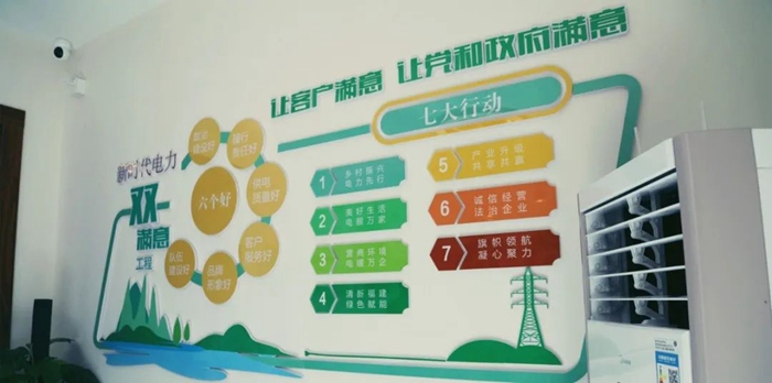 為了積極履行“雙碳”行動,將樂公司圍繞著“綠”的主基調(diào),將兩山理念、社會主義核心價值觀等內(nèi)容以圖文上墻,顏色清新,賞心悅目,這同時也是該公司深化國網(wǎng)福建電力新時代電力“雙滿意”工程的生動體現(xiàn)。