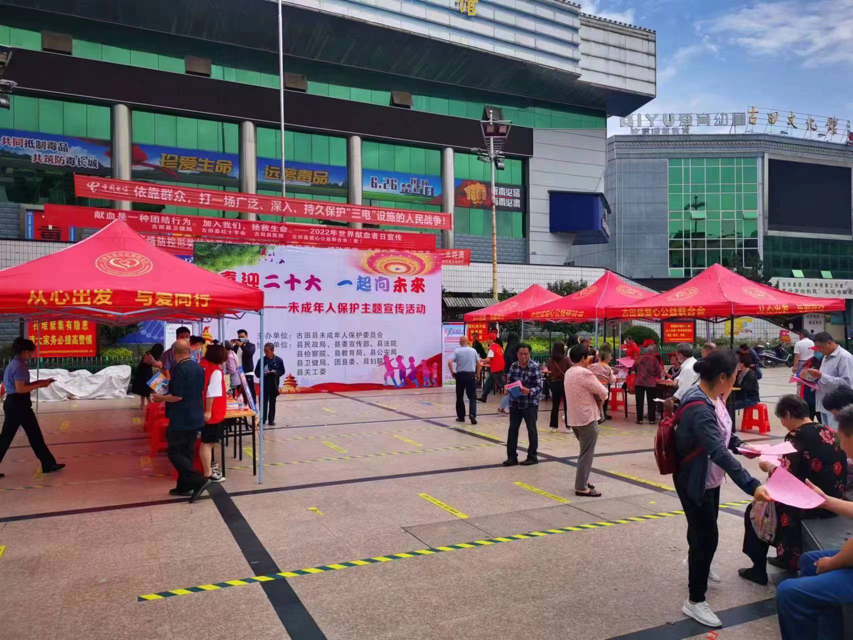 為切實做好未成年人保護(hù)工作,引導(dǎo)未成年人增強(qiáng)自我保護(hù)意識,營造健康良好的成長環(huán)境,6月15日,由古田縣未成年人保護(hù)委員會主辦,縣委宣傳部、縣民政局、縣婦聯(lián)等單位協(xié)辦的《未成年人保護(hù)法》宣傳活動在縣體育廣場開展。