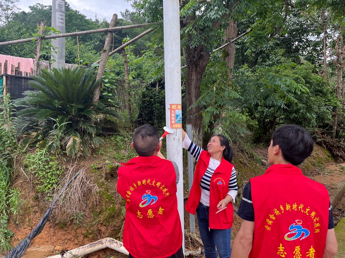 新時(shí)代文明實(shí)踐志愿者鏟除牛皮癬。蘭炎鋒攝