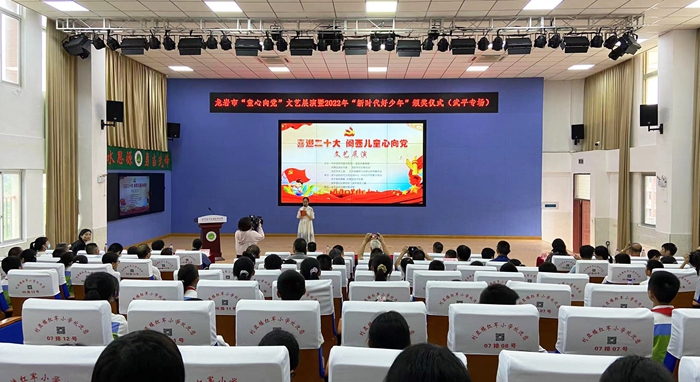 文明風(fēng)6月23日訊 6月21日,龍巖市“童心向黨”文藝展演暨2022年“新時代好少年”頒獎儀式(武平專場)活動在武平縣劉亞樓紅軍小學(xué)舉辦。龍巖市委宣傳部副部長、文明辦主任陳杭芹,市委教育工委委員、市教育局黨組成員、二級調(diào)研員劉仰星,武平縣委常委、宣傳部部長、縣文明委副主任張如春,以及市、縣文明辦、教育局、共青團(tuán)、婦聯(lián)、關(guān)工委等相關(guān)領(lǐng)導(dǎo)出席活動。