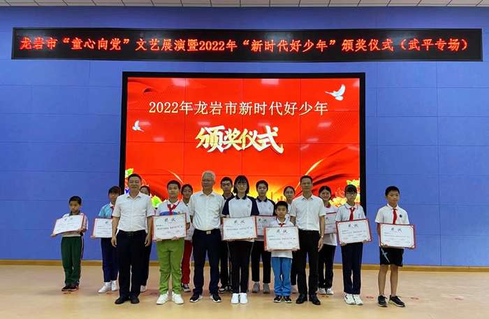 活動在奏唱國歌中拉開序幕。緊接著,與會領(lǐng)導(dǎo)為2022年度龍巖市“新時代好少年”、武平縣“新時代好少年”獲獎學(xué)生代表頒獎。