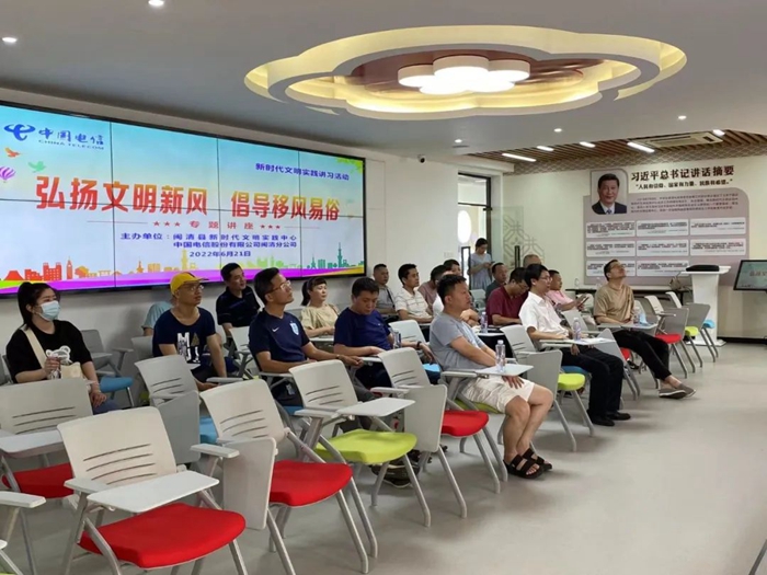 文明風6月25日訊 為進一步培育和踐行社會主義核心價值觀,提升員工的道德水準和文明素養(yǎng),營造講文明、樹新風的企業(yè)和社會氛圍,6月21日下午,閩清縣新時代文明實踐中心開展“弘揚文明新風 倡導移風易俗”文明實踐講習活動,中國電信閩清分公司的20多名員工代表參加了活動。
