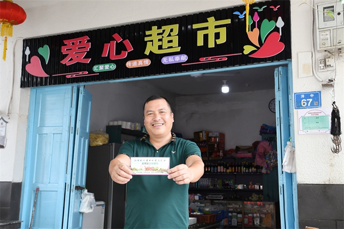 為助力積分制的推行,村兩委還依托農(nóng)村便利店打造“積分愛(ài)心超市”。村民持經(jīng)村委會(huì)蓋章后的文明積分兌換券可在“積分愛(ài)心超市”購(gòu)買(mǎi)任意商品時(shí),按積分的一半抵扣金額。