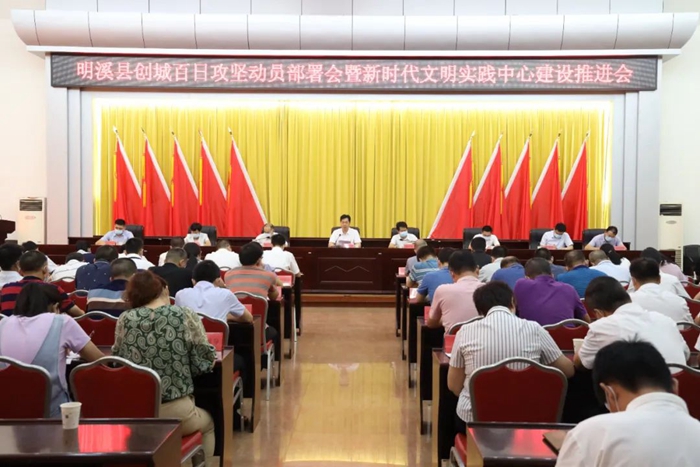 文明風(fēng)6月29日訊 6月28日,明溪縣召開創(chuàng)城百日攻堅(jiān)動(dòng)員部署會(huì)暨新時(shí)代文明實(shí)踐中心建設(shè)推進(jìn)會(huì),對創(chuàng)城和新時(shí)代文明實(shí)踐中心建設(shè)工作進(jìn)行再部署、再落實(shí)、再推動(dòng)。縣委書記鐘科出席會(huì)議并講話,縣委副書記、縣長陳華偉主持會(huì)議,縣委常委、宣傳部部長楊元增安排具體工作。