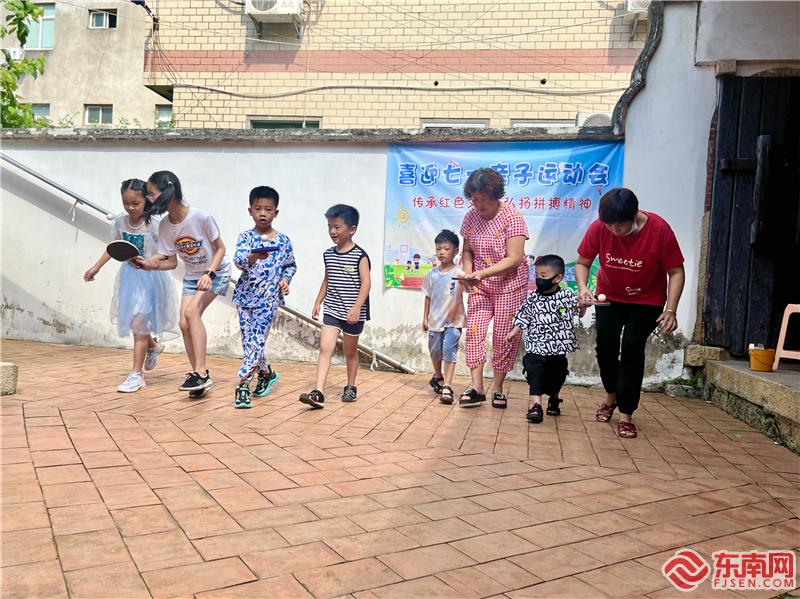 七一親子運動會,巧運乒乓球環(huán)節(jié)(港頭社區(qū)新時代文明實踐站供圖)