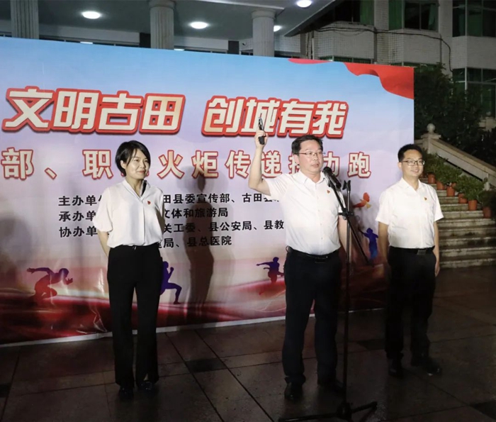 文明風(fēng)6月30日訊 為進(jìn)一步營造濃厚的創(chuàng)城氛圍,6月29日晚8點(diǎn),古田縣“文明古田 創(chuàng)城有我”干部、職工火炬?zhèn)鬟f接力競賽跑啟動(dòng)儀式在縣政府大院舉行。