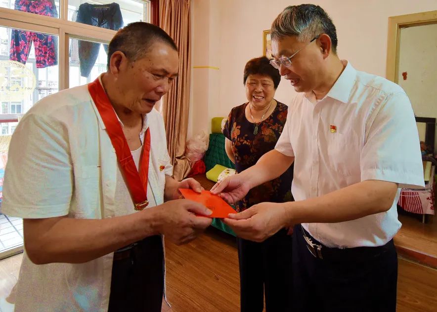 7月1日,蕉城區(qū)委書記何必良帶隊開展黨建工作調研暨“七一”慰問活動,看望慰問困難黨員并為黨齡滿50周年以上的老黨員代表頒發(fā)“光榮在黨50年”紀念章。區(qū)委副書記葉浩文參加活動。