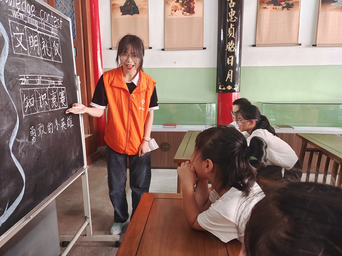 “點(diǎn)點(diǎn)螢火,懷愛育苗”青年志愿服務(wù)隊(duì)教導(dǎo)孩童學(xué)太極、做黏土;“點(diǎn)點(diǎn)螢火,筑夢(mèng)鄉(xiāng)音”青年志愿服務(wù)隊(duì)帶領(lǐng)孩童剪紙、繪畫、進(jìn)行文明禮儀知識(shí)競(jìng)賽……貼心的陪伴,帶給孩童溫暖,精心設(shè)置的“紅色”主題,讓愛國情感的“種子”厚植在孩童心中。