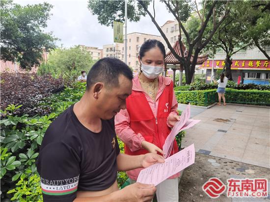 向居民發(fā)放“平安三率防范詐騙”宣傳單(葉厝社區(qū)新時代文明實踐站供圖)