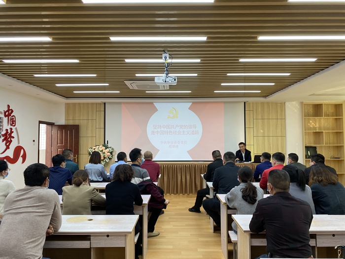 2022年03月11日,華安縣委黨校講師鄭炳林在文明實踐大講堂開展“堅持中國共產黨的領導,走中國特色社會主義道路”理論宣講活動。