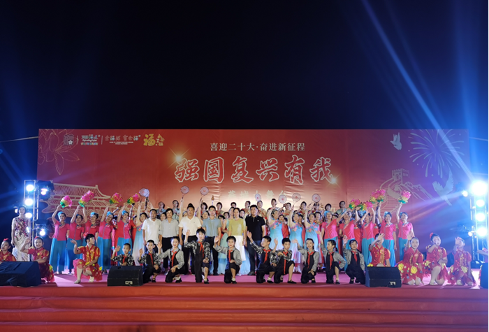 文藝演出節(jié)目豐富多彩,氣勢恢宏、精彩紛呈、高潮迭起。演員們以積極向上的精神風(fēng)貌,慷慨激昂的歌聲,歡快優(yōu)美的舞姿,傾情投入的表演,喚起了人們對激情歲月的回憶和強烈共鳴,激發(fā)了人民群眾奔向美好新生活的干勁。觀眾們聽得入神,看得喜悅,接續(xù)響起了陣陣掌聲,現(xiàn)場充滿了歡樂、祥和、喜慶的氛圍。