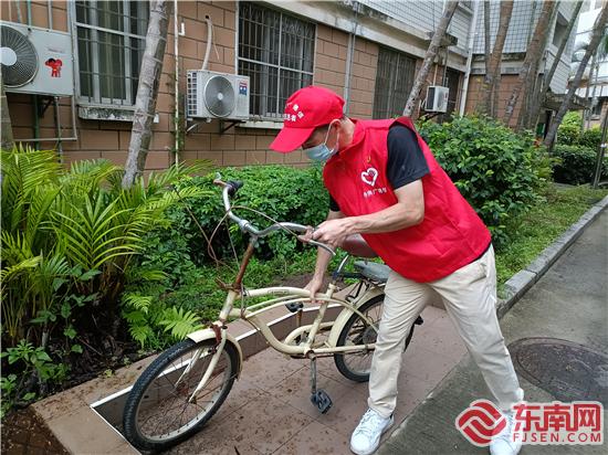 黨員志愿者規(guī)整亂停放的車輛(集美·誠(chéng)毅志愿者聯(lián)盟供圖)