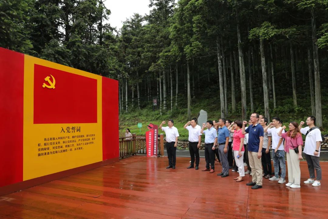 在七步鎮(zhèn)“三庫”生態(tài)文明學(xué)習(xí)實(shí)踐基地“三棵樹”前重溫入黨誓詞。湯小文 攝