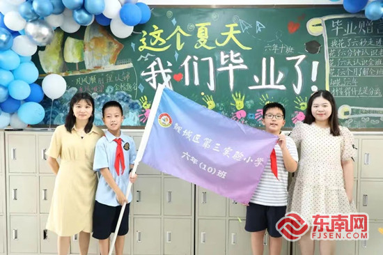 打掃完教室,學長將班旗交給學弟。鯉城區(qū)第三實驗小學 供圖