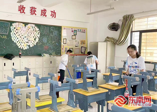 畢業(yè)生們動手打掃教室。鯉城區(qū)第三實驗小學供圖