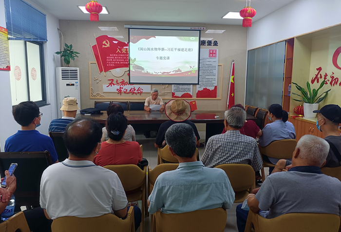 達(dá)道社區(qū)新時(shí)代文明實(shí)踐站作《閩山閩水物華新——習(xí)近平福建足跡》專(zhuān)題黨課(臺(tái)江區(qū)委文明辦供圖)