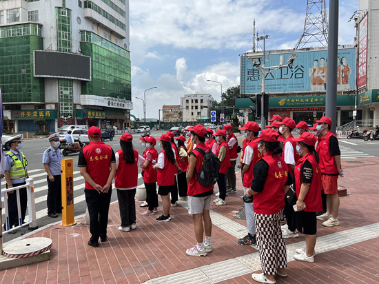 會后,王鍇帶著所有的志愿者到大鵬燈控路口進行現(xiàn)場實際操作,通過觀摩他人執(zhí)勤、自己實際操作和經(jīng)驗總結(jié)討論三個步驟,期間告知他們應如何規(guī)范交通勸導行為,開展勸導工作時要如何進行個人安全防護等,最后還向他們演示了開展勸導工作時的方式方法、文明用語、站姿站位、交通指揮手勢。