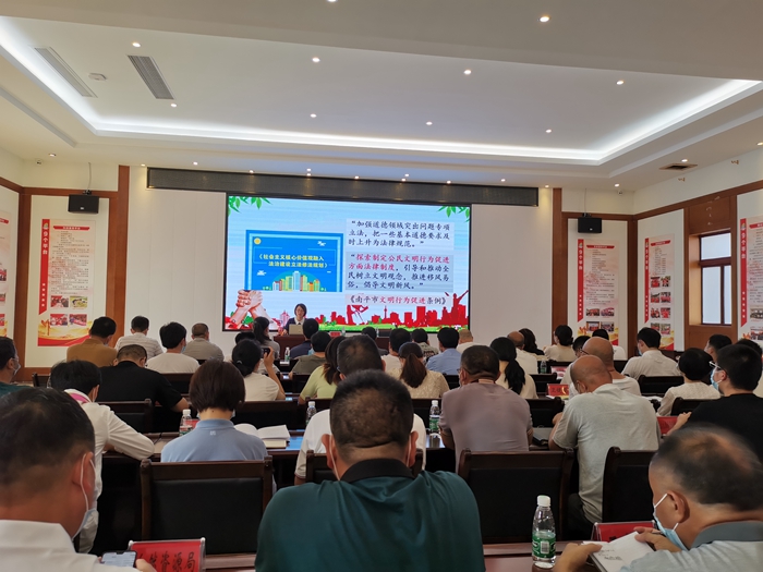 文明風(fēng)7月14日訊 7月13日下午,《南平市文明行為促進(jìn)條例》宣講培訓(xùn)會在武夷山市新時(shí)代文明實(shí)踐中心大講堂舉行,南平市委黨校哲學(xué)經(jīng)濟(jì)學(xué)教研室主任、副教授陳芳萍同志現(xiàn)場進(jìn)行《南平市文明行為促進(jìn)條例》宣講,48家全國、省級、南平級文明單位分管領(lǐng)導(dǎo)參加了此次培訓(xùn),武夷山市委文明辦副主任上官健華主持會議。