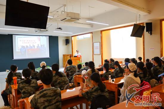鄭水忠向孩子們講述炮戰(zhàn)的記憶(翔安區(qū)委文明辦供圖)