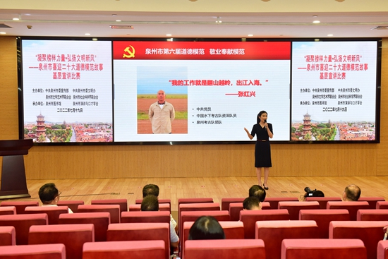 文明風7月20日訊 為深入推進喜迎二十大泉州市道德模范學習宣傳活動,進一步營造崇德向善的濃厚社會氛圍,樹立好人好報的價值導向,7月19日上午,“凝聚榜樣力量·弘揚文明新風”——泉州市喜迎二十大道德模范故事基層宣講比賽在泉州市圖書館舉行。