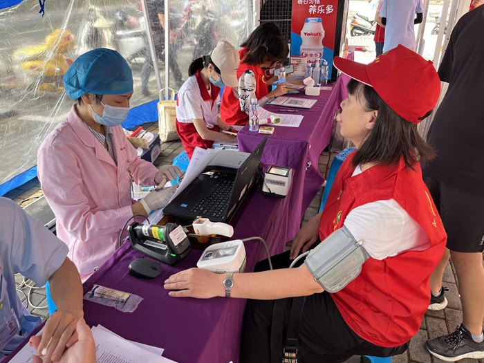 志愿者做好獻血前血壓檢測。永泰縣委文明辦供圖