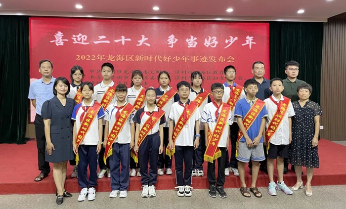 文明風7月21日訊 喜迎二十大,爭當好少年。7月20日上午,由龍海區(qū)委文明辦、區(qū)教育局、團區(qū)委、區(qū)婦聯(lián)、區(qū)關工委聯(lián)合舉辦的2022年龍海區(qū)“新時代好少年”事跡發(fā)布會在龍海區(qū)石碼中心小學舉行。