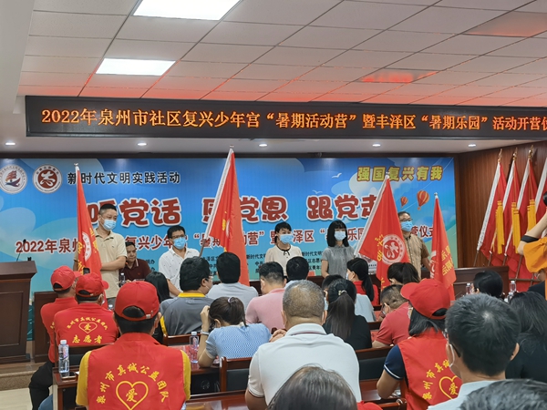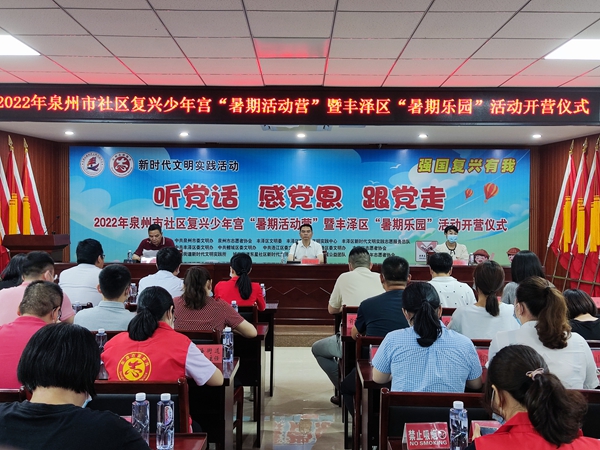 文明風(fēng)7月22日訊 為引導(dǎo)未成年人“聽黨話,感黨恩,跟黨走”,進(jìn)一步深化全國文明城市創(chuàng)建活動(dòng),加大社區(qū)復(fù)興少年宮向未成年人開放的力度,7月20日上午,泉州市委文明辦在豐澤區(qū)舉辦社區(qū)復(fù)興少年宮“暑期活動(dòng)營”暨豐澤區(qū)“暑期活動(dòng)營”開營儀式。