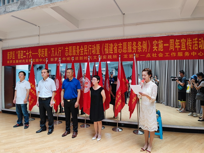 文明風(fēng)7月22日訊 今年是《福建省志愿服務(wù)條例》(以下簡稱《條例》)實施一周年。近日,為迎接黨的二十大勝利召開,使廣大志愿者和志愿服務(wù)組織了解和掌握《條例》內(nèi)容、宣傳和普及《條例》知識,擴大志愿服務(wù)在全社會的影響力,新羅區(qū)新時代文明實踐中心聯(lián)合新羅區(qū)中城街道組織開展新羅區(qū)“喜迎二十大——零距離·萬人行”志愿服務(wù)全民行動暨《福建省志愿服務(wù)條例》實施一周年宣傳活動。區(qū)委文明辦主任林啟森出席此次活動。新羅區(qū)20鎮(zhèn)街文明辦主任、中城街道轄區(qū)內(nèi)社區(qū)、部門、單位志愿者等參加活動。