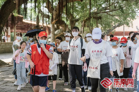 隨著一聲鳴笛聲響起,來自各行各業(yè)的近百名古城熱愛者從威遠(yuǎn)樓出發(fā),以徒步的方式,重走遺產(chǎn)點(diǎn),用腳步感知這片土地的文化底蘊(yùn)。據(jù)介紹,此次活動全程6公里,串聯(lián)起古城轄區(qū)內(nèi)的開元寺、南外宗正司遺址、清凈寺、順濟(jì)橋遺址、天后宮和德濟(jì)門遺址等6個遺產(chǎn)點(diǎn),主辦方還安排講解員全程講解,讓參與者走訪古城、讀懂古城。