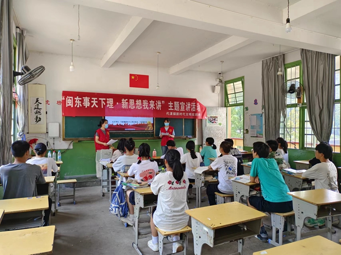 文明風(fēng)7月29日訊 為更好地發(fā)揮新時(shí)代文明實(shí)踐所理論宣講的作用,進(jìn)一步增強(qiáng)學(xué)習(xí)宣傳貫徹習(xí)近平新時(shí)代中國(guó)特色社會(huì)主義思想的主動(dòng)性和自覺(jué)性,7月28日,代溪鎮(zhèn)新時(shí)代文明實(shí)踐所到屏南三中開展“閩東事天下理·新思想我來(lái)講”主題宣講活動(dòng)。