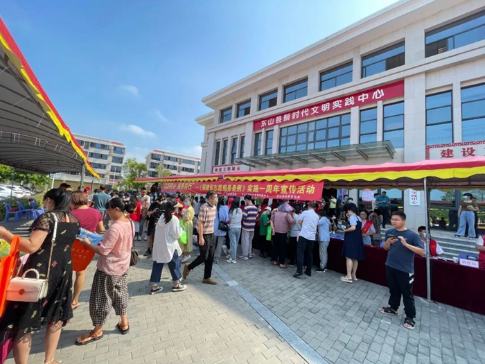 文明風(fēng)8月5日訊 為深入貫徹習(xí)近平新時(shí)代中國(guó)特色社會(huì)主義思想,宣傳貫徹《福建省志愿服務(wù)條例》實(shí)施一周年,進(jìn)一步營(yíng)造人人關(guān)心、支持、參與志愿服務(wù)活動(dòng)的濃厚社會(huì)氛圍,創(chuàng)建全國(guó)文明城市,迎接黨的二十大勝利召開。7月27日上午,東山縣新時(shí)代文明實(shí)踐中心、東山縣委文明辦組織開展了以“志愿同心、服務(wù)同行”為主題的《福建省志愿服務(wù)條例》實(shí)施一周年宣傳文明志愿實(shí)踐服務(wù)活動(dòng)。