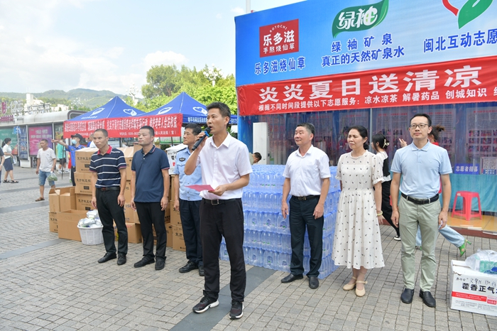 8月3日下午,延平區(qū)在文化廣場(chǎng)舉辦“夏日送清涼”捐贈(zèng)儀式。區(qū)委常委、宣傳部部長(zhǎng)鄭漢洲出席儀式并致辭,區(qū)政協(xié)副主席王世銘,南平市中級(jí)人民法院、區(qū)委文明辦、延平交警大隊(duì)、區(qū)城管局、閩北互動(dòng)志愿者協(xié)會(huì)等單位負(fù)責(zé)人參加活動(dòng)。