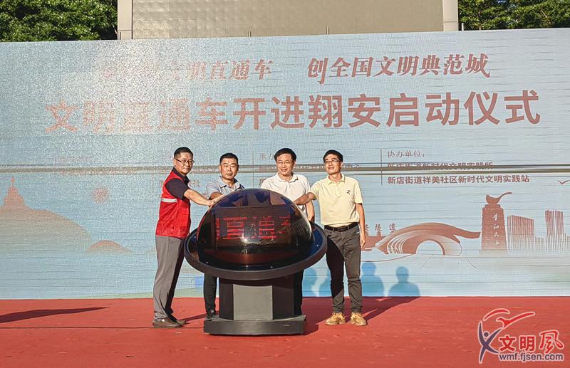 伴隨文明直通車(chē)的啟動(dòng)球亮起,“乘鷺島文明直通車(chē) 創(chuàng)全國(guó)文明典范城”文明直通車(chē)正式開(kāi)進(jìn)翔安。