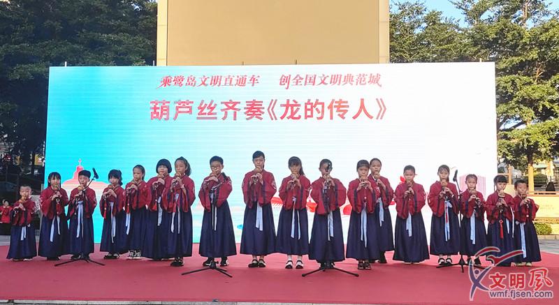 孩子們帶來(lái)葫蘆絲齊奏《龍的傳人》(夏菁 攝)