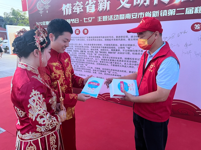 文明風(fēng)8月9日訊 2022年七夕節(jié)期間,南安深入貫徹落實習(xí)近平新時代中國特色社會主義思想,以“喜迎二十大 強國復(fù)興有我”為主題,結(jié)合常態(tài)疫情防控,突出愛情忠貞、家庭和睦,充分挖掘“我們的節(jié)日·七夕”深厚的文化內(nèi)涵,開展豐富多彩的系列活動,引導(dǎo)人們學(xué)習(xí)和踐行社會主義核心價值觀,傳承中華優(yōu)秀傳統(tǒng)文化,弘揚七夕節(jié)日習(xí)俗,樹立正確愛情觀、婚戀觀、家庭觀。