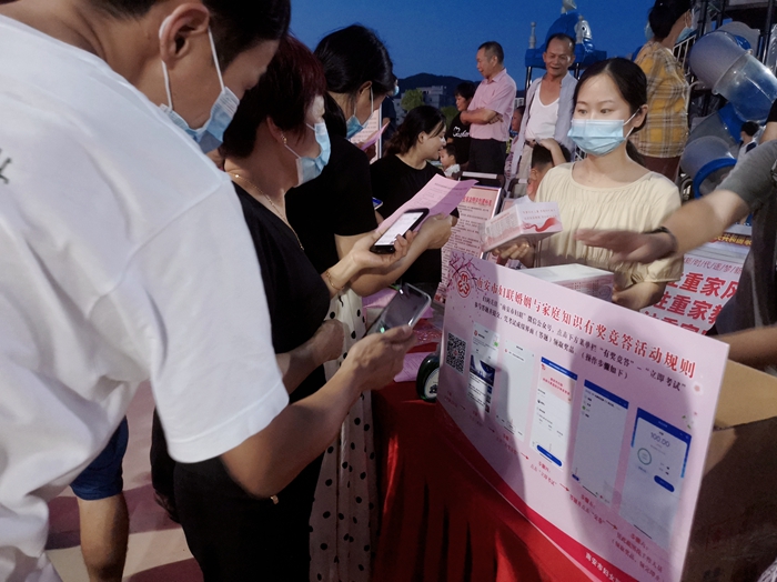 (三)培育先進(jìn)典型,弘揚優(yōu)良家風(fēng)家訓(xùn)。結(jié)合“文明家庭”“最美家庭”“好公婆、好兒媳、好妯娌”“星級文明戶”等先進(jìn)典型創(chuàng)評活動,通過圖片展、座談會、故事匯等多種形式,廣泛宣傳夫妻恩愛、尊老愛幼、家庭和睦的先進(jìn)事跡,弘揚好家風(fēng),傳承好家訓(xùn)。英都鎮(zhèn)組織開展“我們的節(jié)日·七夕”主題座談會,會上“文明家庭”“星級文明戶”等代表暢所欲言,分享家庭和睦相處、夫妻恩愛、婆媳和諧、子女孝順等家庭關(guān)系故事,弘揚好家風(fēng)?;橐龅怯浱幵谛姓?wù)中心開展“七夕·喜結(jié)連理”拍照活動,設(shè)置《福建省家庭教育促進(jìn)條例》、家風(fēng)家訓(xùn)故事展板,讓前來登記結(jié)婚的新人學(xué)習(xí),拍照紀(jì)念,弘揚新時代婚姻理念。在集體婚禮現(xiàn)場表彰“星級文明戶”,邀請文明家庭、金婚夫婦給新人送祝福、贈同心結(jié),新人代表帶頭宣讀“弘揚婚育新風(fēng)促進(jìn)家庭健康”倡議書,倡導(dǎo)婚嫁新風(fēng)?;顒蝇F(xiàn)場,還設(shè)置了家庭教育促進(jìn)法宣傳海報、婚姻與家庭法律知識有獎問答環(huán)節(jié),并分發(fā)《家庭教育促進(jìn)法》《未成年人保護(hù)法》等宣傳手冊500余份。市供銷社組織干部職工到貴峰王氏家風(fēng)家訓(xùn)館開展“我們的節(jié)日·七夕”弘揚優(yōu)良家風(fēng)家訓(xùn)主題教育活動,通過參觀學(xué)習(xí)王氏家族“詩禮傳家、克勤克儉、清廉處世”等充滿溫情和智慧的家規(guī)美德故事,教育和引導(dǎo)干部職工積極分擔(dān)家務(wù)、共同處事、交流感情、增進(jìn)理解,追求愛情美滿、家庭和睦的美好生活。