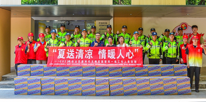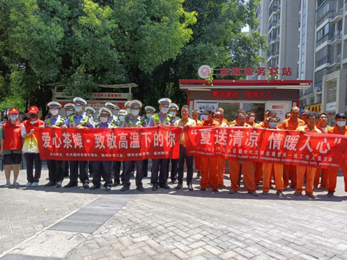 文明風8月9日訊 為表達對堅守在一線工作人員的關(guān)心關(guān)愛,進一步弘揚“奉獻、友愛、互助、進步”的志愿精神,深入推進新時代文明實踐活動提質(zhì)增效。8月8日上午,由倉山區(qū)新時代文明實踐中心主辦;中共倉山區(qū)委文明辦、倉山區(qū)城管局、倉山交警大隊、中建四局建設(shè)發(fā)展有限公司、金山街道麗景社區(qū)新時代文明實踐站承辦;福州市雅好社會工作服務中心協(xié)辦,共同開展了“夏送清涼 情暖人心”——2022年倉山區(qū)新時代文明實踐慰問一線工作人員活動,希望可以在炎炎夏日中為奮戰(zhàn)在一線的工作人員送去一份清涼。