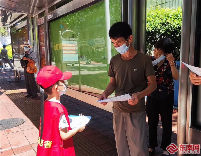 志愿者正向路人分發(fā)宣傳折頁(寧寶社區(qū)新時代文明實踐站供圖)
