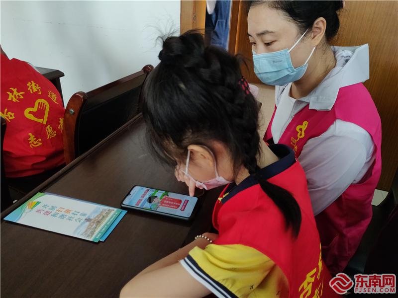 小志愿者參與掃黃打非小游戲(寧寶社區(qū)新時代文明實踐站供圖)