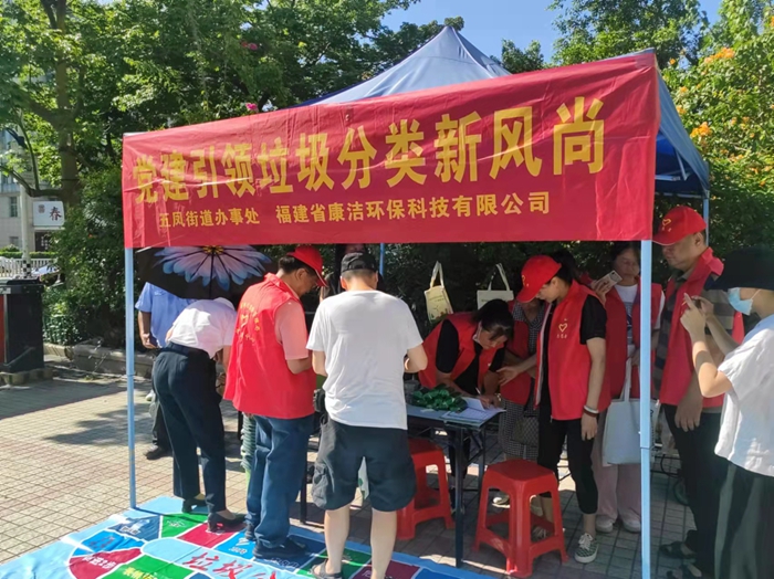 為助力文明典范城市創(chuàng)建,進(jìn)一步提高小區(qū)居民垃圾分類參與度,鼓樓區(qū)五鳳街道組織社區(qū)志愿者、五鳳城管中隊(duì)、福建省康潔環(huán)境科技有限公司在塞納陽光小區(qū)開展“垃圾分類始于心,持之以恒始于行”主題宣傳活動(dòng)。