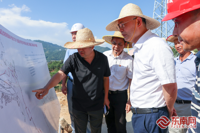 蕉城區(qū)委書記何必良帶領(lǐng)區(qū)直有關(guān)部門在項目施工現(xiàn)場調(diào)研。東南網(wǎng)記者 葉伏國 攝