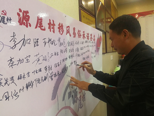 松溪縣花橋鄉(xiāng)源尾村村民積極參與移風(fēng)易俗承諾簽名 南平市委文明辦供圖