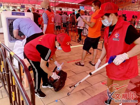 他們是暑休的老師、放假的職工退休的老人……一個個穿上耀眼的紅馬甲,就都成了為翔安防疫作戰(zhàn)貢獻個人力量的志愿者。志愿者們幫忙引導掃碼、維持秩序,他們有的還是文明創(chuàng)建的志愿者,將文明意識根植心中,在核酸檢測現場自發(fā)維護好環(huán)境衛(wèi)生。