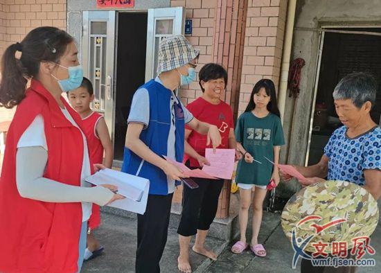 志愿者登門宣傳文明創(chuàng)建。(汀溪鎮(zhèn)供圖)
