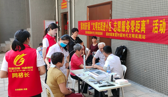 黨建引領(lǐng)促融合,中醫(yī)攜手惠民生,良好風尚顯文明,為深入推進新時代文明實踐活動,發(fā)揚“奉獻、友愛、互助、進步”的志愿精神,助力全國文明城市創(chuàng)建,8月11日上午,國歡鎮(zhèn)新時代文明實踐所組織志愿者聯(lián)合國湄領(lǐng)涵小區(qū)黨支部、單元長協(xié)同工作,開展中醫(yī)義診志愿服務(wù)。