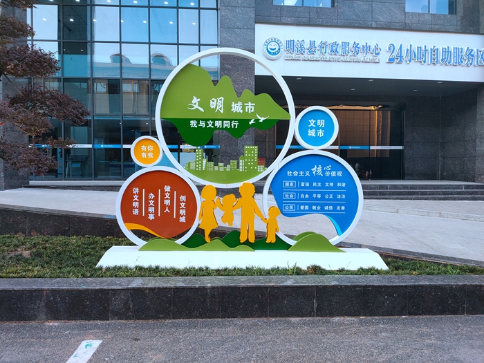 現(xiàn)在無論是走在馬路邊,還是茶余飯后在小區(qū)廣場聊天散步,大家所到之處、目之所及都是“一看就懂、一學(xué)就會、一說就知”的公益廣告。明溪縣完成對全縣主次干道、商業(yè)大街、公共廣場、公園、景區(qū)景點公益廣告以及景觀小品進(jìn)行統(tǒng)一的規(guī)劃、設(shè)計工作,已分別在河濱公園、歐僑廣場、時代廣場、體育廣場等公園、廣場設(shè)置景觀小品9個,在河濱南、北路設(shè)置戶外路牌廣告21個,橫六線花圃新增花草牌公益廣告120個,同時在城區(qū)主要大街增設(shè)精神文明建設(shè)宣傳欄7個。實現(xiàn)創(chuàng)城公益廣告全覆蓋,以“潤物細(xì)無聲”的引導(dǎo)作用,讓居民在潛移默化中接受文明的洗禮,營造了“創(chuàng)建無處不在、文明無時不有”和全民共同參與的良好氛圍,有效增強了城市的凝聚力、影響力和廣大市民的認(rèn)同感、獲得感。同時電信、移動、聯(lián)通等平臺定期開展創(chuàng)城常識短信推送;明溪縣充分利用公眾號、微信群、電子顯示屏等媒介平臺推送、刊播“社會主義核心價值觀”、“講文明 樹新風(fēng)”等創(chuàng)建宣傳內(nèi)容,營造濃厚的創(chuàng)建氛圍。