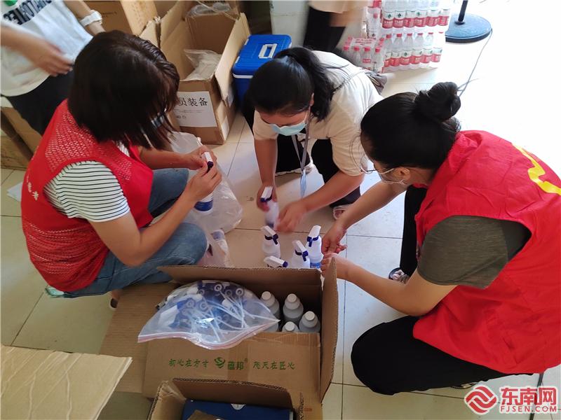 孫厝社區(qū)工作者們在清點(diǎn)防疫物資(僑英街道新時代文明實(shí)踐所供圖)
